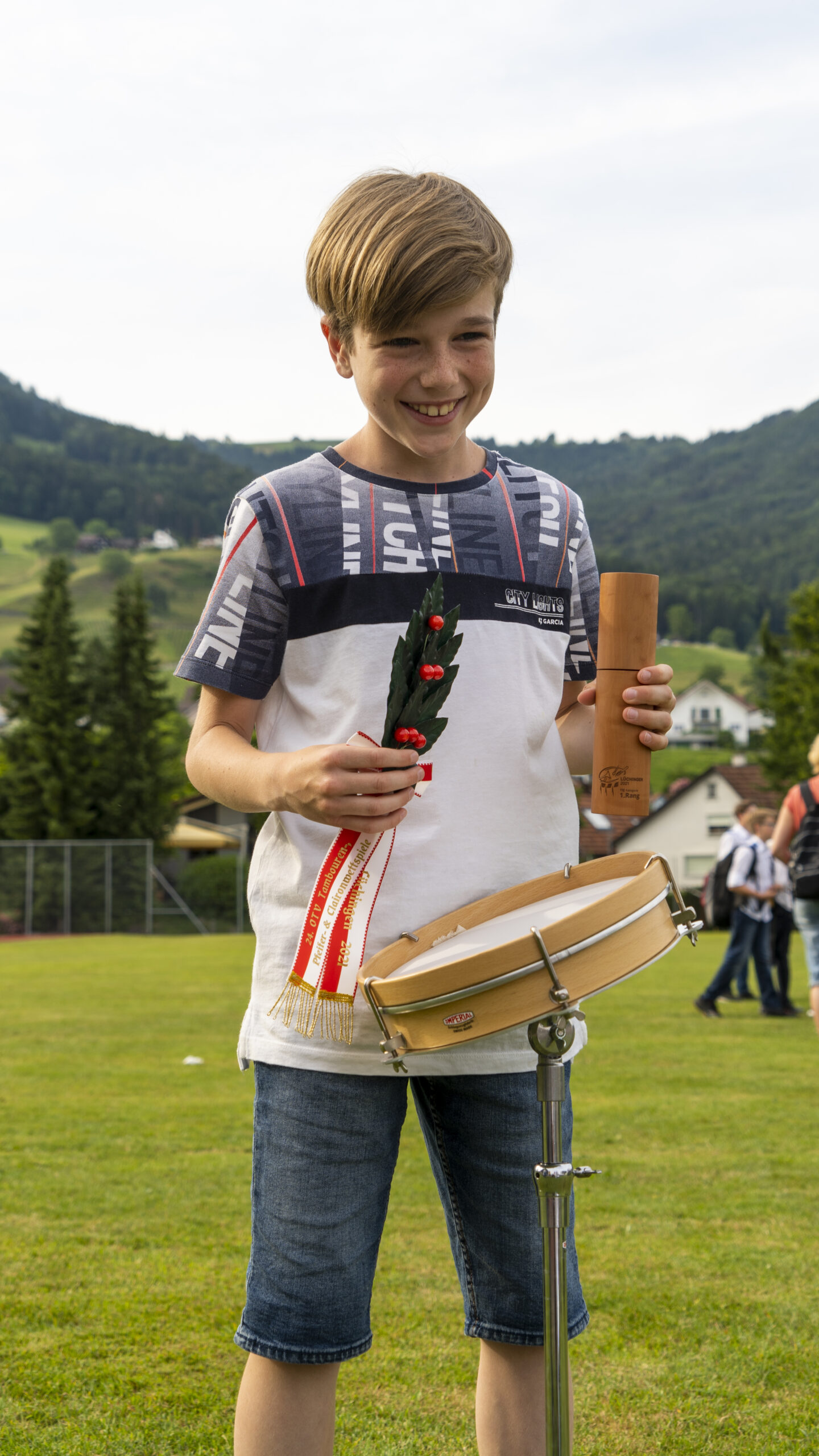 Am Sonntag mass sich die junge Generation an ihren Trommelkünsten. Insgesamt konnten 9 Emser Jungtambouren eine der begehrten Auszeichnungen ergattern. In der Kategorie T1J verpasste Sebastian Ludwig mit dem 11. Rang knapp die Top-10. Livio Niedermann holte sich einen Kranz auf dem 17. Rang. Drei Jungtambouren der Kategorie T2J konnten sich über einen Kranz erfreuen. Auf dem 12. Rang verpasste Armando Altherr die Top-10 mit nur 7 Zehntel. Seyan Fetz konnte nach seinem Sieg im T3J des letzten Wettspiels bei seiner ersten Teilnahme im T2J den 19. Rang sichern. Janin Federspiel erreichte den 30. Rang. Unsere 10 Jüngsten traten in der Kategorie T3J an. Davon konnten 4 eine Auszeichnung ergattern. Neal Federspiel setzte sich mit 1.1 Punkten abstand auf den 2. Rang als Kategorie Sieger durch. Mit nur 0.6 Punkten verpasste Dario Altherr knapp das Podest und erreichte den 5. Rang. Lars Federspiel belegt den 15. Rang. Lukas Hürlimann konnte sich auf dem 23. Rang noch die letzte Auszeichnung sichern.